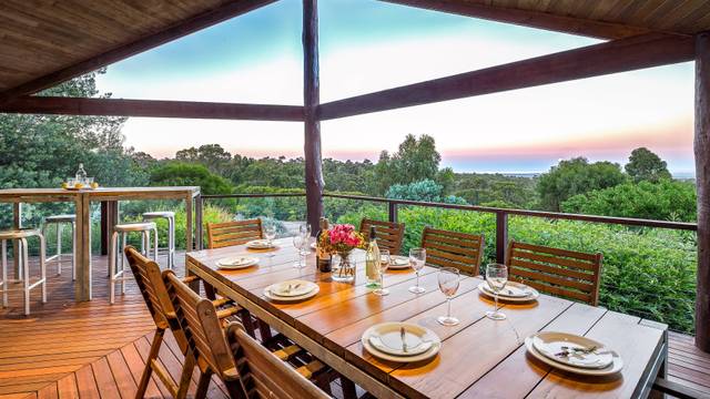 Burwood Bush House is situated amongst the tree tops and boasts incredible views over the tall timbers all the way to the sparkling waters of Geographe Bay.